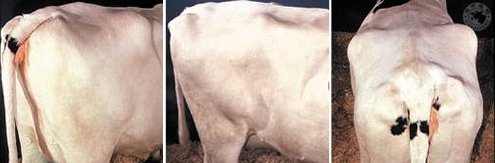 關于青年牛的體況評分,由于不斷生長,體況也一直在增加,在產犢時達到3.5為最佳。另外,筆者注意到由于其骨架較小,脂肪沉積程度往往被低估,體況評分時其實際評分比成母牛體況評分要低0.25-0.5個單位,建議牧場人員用手按壓,自行校正。